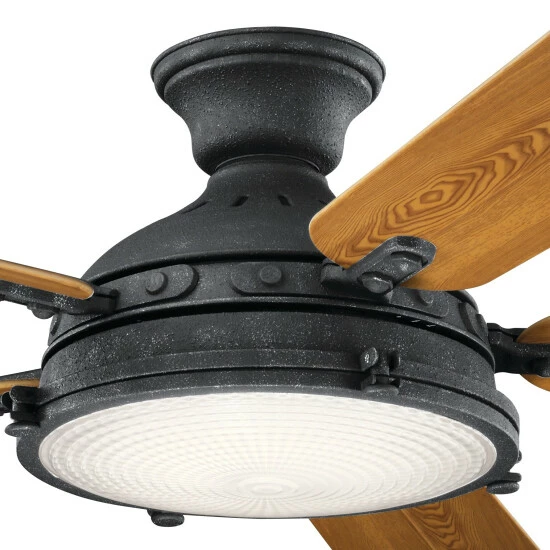 This rustic 60 inch Hatteras Bay Patio LED fan is a charming accent piece that will complement any space. Featuring a Distressed Black finish and a broad Fresnel Lens, this design is sure to leave an impression in your home.