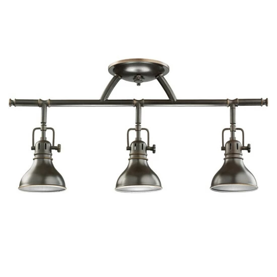 This Hatteras Bay collection 3-light halogen rail light features an olde bronze finish that will complement many contemporary and modern decors throughout your home. The matching metal shades add interest and completes this unique design. The heads swivel so you can direct the light to where you want it. Classic industrial form in this adjustable rail light expands your decorating options. Versatile swivel head focuses light in multiple directions. Lamps swivel 90 degrees and rotate 350 degrees. Dimensions: 11.25 inches high x 22.75 inches wide x 7.5 inches deep. Turn on our fixtures, and watch your room transform even more. From lighting to ceiling fans Kichler collections are built around our simple philosophy of bringing you the effect you want for your home or business. Our collections coordinate from room-to-room, or let you mix and match from wall-to-ceiling. And each fixture is designed to deliver a stunning quality of light that makes your space more beautiful and more livable. As one of the largest, privately held residential lighting fixture companies in North America, we’re constantly working to create innovative and on-trend decorative products as well as knowledgeable support. Since 1938, we’ve been creating products that are not only well designed, but also practical. We invest millions of dollars each year in design, technology and testing to assure that we’re offering distributors, designers, installers and homeowners not only innovative technologies – but also fixtures that perform efficiently, install intuitively and deliver a premium source of light. This philosophy holds true for everything we create – from our wide variety of decorative fixtures to our award-winning landscape lighting to our ceiling fans.