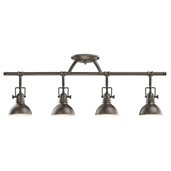 Bring a nautical accent to your decorating scheme with this four-light rail fixture from the Hatteras Bay collection. With a shape evocative of antique ship lanterns and an olde bronze finish, this rail light lends a historical air to your home. Constructed from metal for durability, the adjustable angle lamps direct illumination just where you need it.