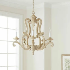 This 5-light chandelier from the Hayman Bay collection features a distressed antique white finish that will complement many lodge, country, rustic or traditional decors. The smooth, clean lines of the steel frame will add a touch of elegance to any space.