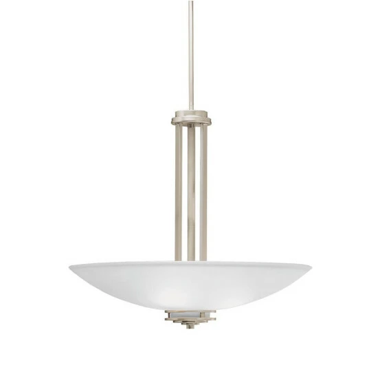 This Hendrik collection 3-light pendant features a brushed nickel finish that will complement many contemporary and modern decors. The bowl shaped satin etched cased opal glass shade softens the light to add a warm ambiance to any space. Named after renowned Dutch architect, Hendrik Berlage, the Hendrik collection is a gorgeous family of contemporary fixtures that honor the man who was regarded by many as the father of modern architecture. Much like Berlage himself, The Hendrik collection is regarded as an intermediary between modern and traditional styles. Classic lines are enhanced with a soft touch of current style cues to work in a number of aesthetic environments. This piece includes 94 inches of wire and three (3) 12 inch stems so it can be hung at your desired height. Dimensions: Up to 60 inches high x 24 inch diameter. Turn on our fixtures, and watch your room transform even more. From lighting to ceiling fans Kichler collections are built around our simple philosophy of bringing you the effect you want for your home or business. Our collections coordinate from room-to-room, or let you mix and match from wall-to-ceiling. And each fixture is designed to deliver a stunning quality of light that makes your space more beautiful and more livable. As one of the largest, privately held residential lighting fixture companies in North America, we’re constantly working to create innovative and on-trend decorative products as well as knowledgeable support. Since 1938, we’ve been creating products that are not only well designed, but also practical. We invest millions of dollars each year in design, technology and testing to assure that we’re offering distributors, designers, installers and homeowners not only innovative technologies – but also fixtures that perform efficiently, install intuitively and deliver a premium source of light. This philosophy holds true for everything we create – from our wide variety of decorative fixtures to our award-winning landscape lighting to our ceiling fans.