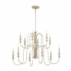 Light, airy and refined, the Karthe collection celebrates turned elements and a nod to heirloom quality details. Karthe is classic and brings casual elegance into your home.Β Sweeping arms in Brushed Nickel keep this Karthe 2-tier 12 light chandelier light and airy. Its Beech finish beautifully shows off the turned wood spindle details. Illuminate your space with its casual elegance.