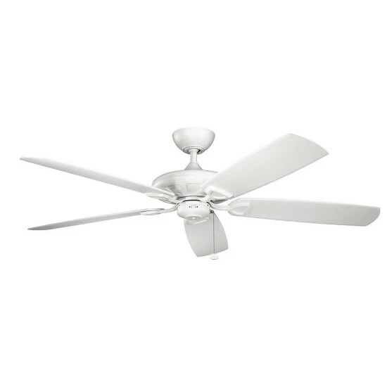 This 60-inch, 5 blade ceiling fan from the Kevlar collection features a matte white finish that will subtly highlight the existing decor in your home. This attractive fan will complement many traditional decors. This matte white ceiling fan from the Kevlar collection, which is rated for wet areas, is an ideal choice for larger outdoor porches and patios. Smart detailing on the motor housing increases the stylish appeal. The 5 blades are pitched 14 degrees and come with a matte white finish. The 188MM X 25MM Motor will provide the quiet power you need. This fan comes complete with a pull chain (3 speeds forward and reverse). Dimensions: 13.75 inches high x 60 inch diameter. Turn on our fixtures, and watch your room transform even more. From lighting to ceiling fans Kichler collections are built around our simple philosophy of bringing you the effect you want for your home or business. Our collections coordinate from room-to-room, or let you mix and match from wall-to-ceiling. And each fixture is designed to deliver a stunning quality of light that makes your space more beautiful and more livable. As one of the largest, privately held residential lighting fixture companies in North America, we’re constantly working to create innovative and on-trend decorative products as well as knowledgeable support. Since 1938, we’ve been creating products that are not only well designed, but also practical. We invest millions of dollars each year in design, technology and testing to assure that we’re offering distributors, designers, installers and homeowners not only innovative technologies – but also fixtures that perform efficiently, install intuitively and deliver a premium source of light. This philosophy holds true for everything we create – from our wide variety of decorative fixtures to our award-winning landscape lighting to our ceiling fans.