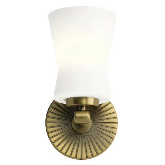 - The Brianne 1 light wall features a uniquely cinched glass shade against a Brushed Natural Brass starburst backplate.