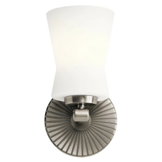 - The Brianne 1 light wall features a uniquely cinched glass shade against a Classic Pewter starburst backplate.
