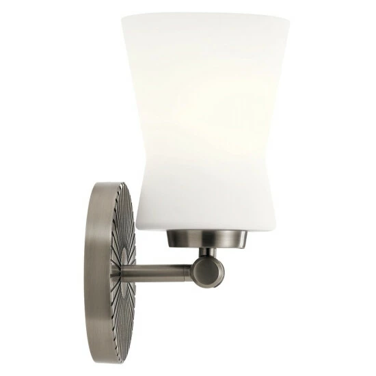 The Brianne 1 light wall sconce makes luxury fun. Its backplate was inspired by the starburst clocks of mid-century design. Coupled with the uniquely shaped glass and the ever stylish Classic Pewter, its retro at its finest.Mid-century modern design keeps the retro alive, and Brianne keeps it luxurious.The starburst is the quintessential mid-century motif. It can be found on vintage clocks, mirrors, and even furniture. Brianne features this iconic design on its backplate, beautifully elevating it to luxurious heights.