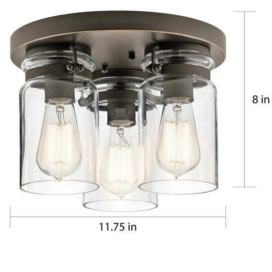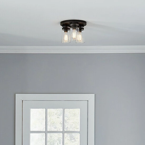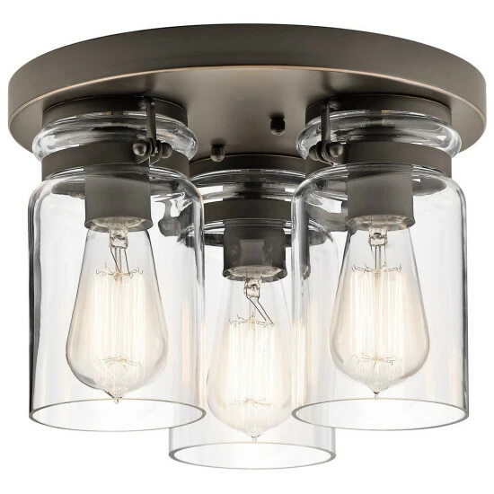 Bring a touch of old-world panache to your space with this flush-mount light from Kichler. This Brinley light features three clear globes reminiscent of canning jars to bring a rustic vibe to your room while providing brilliant overhead illumination. A bronze finish cements the traditional look of this exquisite fixture.