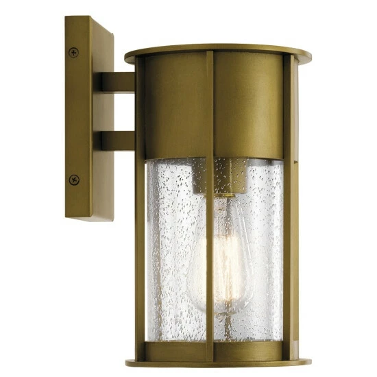 Enhance your home’s exterior with the Camillo 11 Inch 1 light wall light. Its vertical louvers and Clear Seeded Glass add dimension, while its Natural Brass finish adds warmth. It’s a sophisticated refinement with a Luxe Industrial style.The Camillo collection respects your edge as it refines your home.Experience the texture and dimension of the Camillo wall light’s seeded glass. Inside this clear glass are bubbles of various sizes, giving the shade delightful depth. Because its clear, the glass lets you enjoy the Edison-style bulb’s uniqueness.Vertical louvers give this lighting fixture its industrial-style personality. Reminiscent of industrial vents in factories and warehouses, their presence is unique and unexpected.