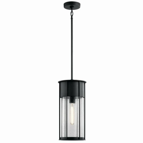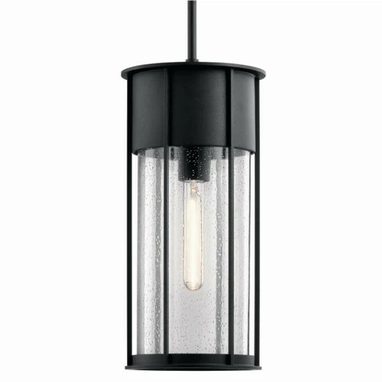 Enhance your home’s exterior with the Camillo 18 Inch 1 light hanging pendant. Its vertical louvers and Clear Seeded Glass add refined dimension, while its sleek Black finish maintains its Luxe Industrial-style edge. The Camillo collection respects your edge as it refines your home.Experience the texture and dimension of the Camillo wall light’s seeded glass. Inside this clear glass are bubbles of various sizes, giving the shade delightful depth. Because its clear, the glass lets you enjoy the Edison-style bulb’s uniqueness.Vertical louvers give this lighting fixture its industrial-style personality. Reminiscent of industrial vents in factories and warehouses, their presence is unique and unexpected.