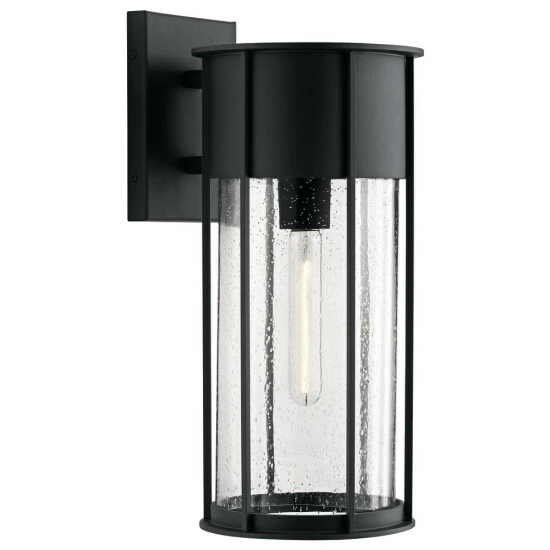 Enhance your home’s exterior with the Camillo 18 Inch 1 light wall light. Its vertical louvers and Clear Seeded Glass add refined dimension, while its sleek Black finish maintains its Luxe Industrial-style edge. The Camillo collection respects your edge as it refines your home.Experience the texture and dimension of the Camillo wall light’s seeded glass. Inside this clear glass are bubbles of various sizes, giving the shade delightful depth. Because its clear, the glass lets you enjoy the Edison-style bulb’s uniqueness.Vertical louvers give this lighting fixture its industrial-style personality. Reminiscent of industrial vents in factories and warehouses, their presence is unique and unexpected.