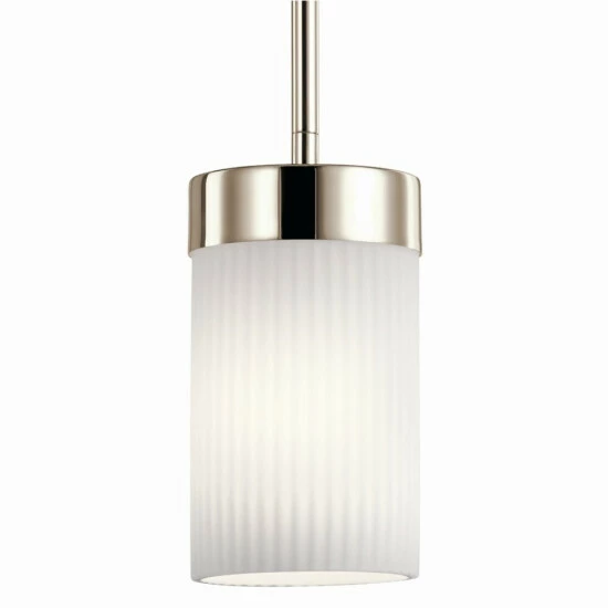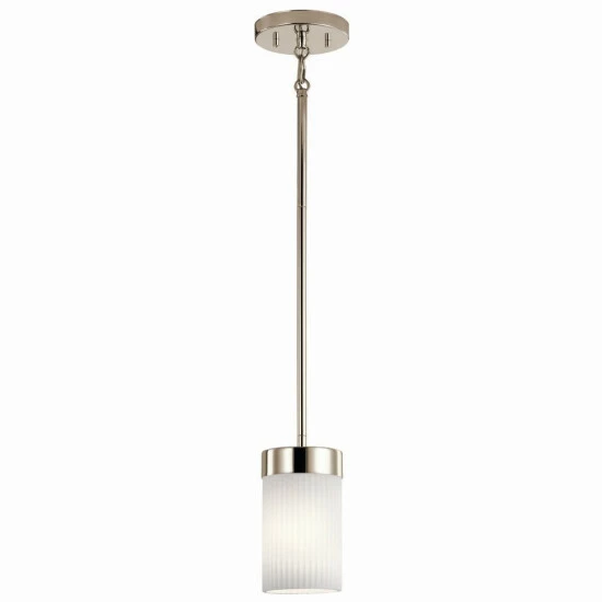 Ciona 1 light mini pendant captures elegance in an unapologetically simple way. Its Round Ribbed Glass shade was inspired by ancient Egyptian columns, and its Polished Nickel finish firmly places this piece in the here and now. Born out of Art Deco, Ciona also works well in traditional and modern interiors.The Ciona shade is made of a unique Ribbed Glass. Its shape was inspired by the columns found throughout ancient Egyptian architecture. Textured columns have a long history of representing the exquisite, and the Ciona mini pendant is no exception.Ciona provides a beautifully focused light. It also lets a little light leak out the bottom of the cup β a delightfully welcome surprise.