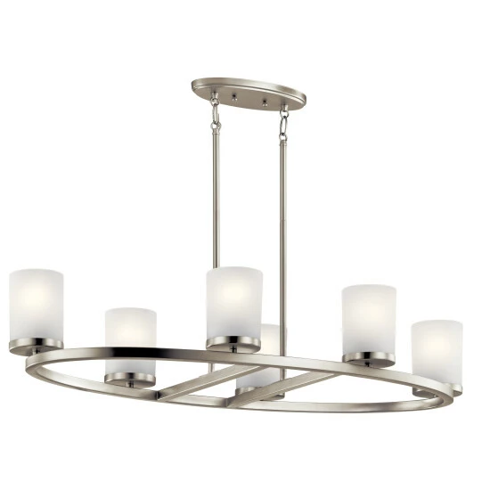 Embellish your dining area with the luminous touch of the DaimlenΒ chandelier. Finished in sleek brushed nickel, this contemporary chandelier is an elegant addition to your modern high-fashion style.