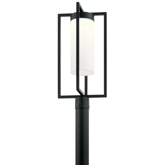 The Drega 24 inch 1 LED post light was inspired by a glowing pillar candle within a leaded glass terrarium. Its Satin Etched Glass adds dimension as it lights your pathways. In a timeless Black finish, Drega is simply elegant.The minimalist design of Drega complements a wide variety of contemporary exteriors.The intertwined rectangular-shaped frame was inspired by the leaded glass terrariums around a pillar candle. Its open, clean shape comes from the modern minimalism aesthetic of blending modest forms to create simple, serene beauty.Each glass shade features a beautiful pattern on the inside, leaving the shade’s outside smooth. Adding dimension, it’s an elegant contrast to the open frame. The etching softens the look but still produces an ambient light perfect for your home’s exterior.