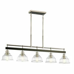 The Eastmont 5 light linear chandelier is undeniably remarkable. A Walnut Wood arm with Polished Nickel accents set the scene for the Clear Glass double-tiered shades, making this one of our most sophisticated and versatile fixtures. Blurring style lines, Eastmont can add sophistication to rustic or vintage space, and some edge to a simple, modern space.Nothing about the Eastmont linear chandelier is stagnant. Its double-tiered shades are Clear Glass, letting the bulbs shine through. To change up its look, simply change the bulbs β or get crazy and remove the glass entirely. To ensure the Eastmont is exactly as you wish, it comes with multiple stems for different lengths. You can also use a combination of stem and chain.