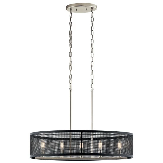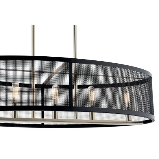 This beautiful brushed nickel fixture with a satin black metal mesh shade is part of the Edmund collection. It offers contrast and visual interest. This piece will accent your room beautifully.