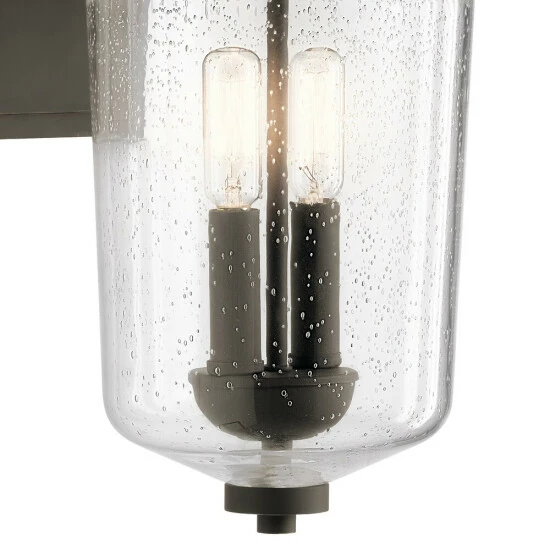 Inspired by industrial machine fitting, the detail on the arm of the Harmont 16 inch 2 light wall light is exquisite. Clear Seeded Glass gives it texture, and an Olde Bronze finish completes this timeless, dramatic story.Whether your home is vintage industrial or lodge, Harmont adds the character you’re looking for in exterior lighting.Every time we notice the extension arm of the Harmont wall light, we fall in love all over again. Its exquisite detail was inspired by industrial machine fitting, and this refinement epitomizes the allure of the vintage industrial design style. Inside of Clear Seeded Glass are bubbles, of varying sizes, that give the glass texture and dimension. It helps distinguish the Harmont collection from the cleaner, minimalistic styles. The Harmont wall light completes a vintage look that’s dramatic, refined, and timeless.