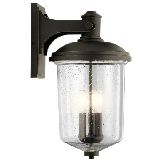 Inspired by industrial machine fitting, the detail on the arm of the Harmont 19 inch 3 light wall light is exquisite. Clear Seeded Glass gives it texture, and an Olde Bronze finish completes this timeless, dramatic story.Whether your home is vintage industrial or lodge, Harmont adds the character you’re looking for in exterior lighting.Every time we notice the extension arm of the Harmont wall light, we fall in love all over again. Its exquisite detail was inspired by industrial machine fitting, and this refinement epitomizes the allure of the vintage industrial design style. Inside of Clear Seeded Glass are bubbles, of varying sizes, that give the glass texture and dimension. It helps distinguish the Harmont collection from the cleaner, minimalistic styles. The Harmont wall light completes a vintage look that’s dramatic, refined, and timeless.