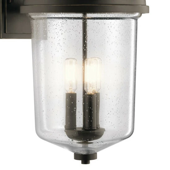- The Harmont 19 inch 3 light wall features Clear Seeded Glass and Olde Bronze finish to create a light that’s dramatic and vintage.