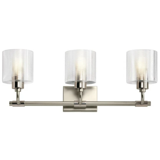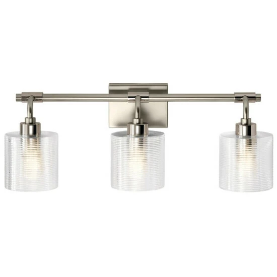 The Harvan 25 inch 3 light vanity light declares your refined industrial style. It’s Satin Nickel finish stands out from the crowd, and its Polished Nickel accents add a dash of glamour. Not to be left out, the clear glass shade is ribbed, giving it added dimension. This light will make guests head to your bathroom just to check it out.Each fixture in the Harvan collection takes the industrial look and elevates to the refined.With its Satin Nickel finish, this vanity light refines the edginess we love in industrial design. The Polished Nickel accents brings a touch of shine while maintaining the monochromatic look. It’s not for everyone, but it’s right for you.The first thing you notice about the Harvan collection is the Clear Ribbed Glass shade. An unexpectedly welcome detail, it owns its uniqueness. The ribbing doesn’t affect the light, so you still get the ambient lighting you’d want above your vanity mirror.