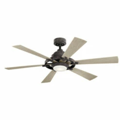 The Irasβ’ 52 inch LED ceiling fan is a vintage dream. With its windmill-inspired shape, it adds character to your vintage industrial or farmhouse interior. Its Weathered Zinc body beautifully complements its Weathered White Walnut-finished blades for a refreshing spin on a classic look. Iras completes your vintage industrial setting, and because it resembles a windmill, it also blends nicely in vintage farmhouse interiors. Iras delivers an energy efficient light diffused through its beautiful Etched Cased Opal Glass. Iras ceiling fan blades consist of ABS plastic, making this fixture durable enough for damp settings. Extend your vintage industrial or farmhouse style throughout your home in your kitchen, bathroom, or laundry room. Complete your outdoor setting, and place Iras in your covered patio or porch.