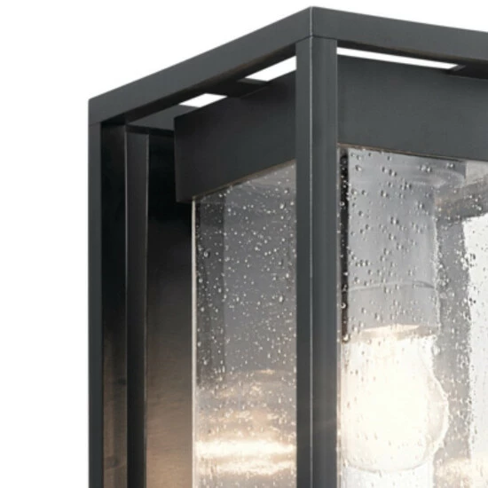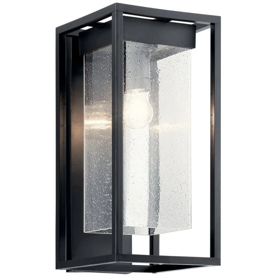 Inspired by residential architecture where bold, simple forms are used to help delineate areas of the home. The center seeded glass shade seems to give the illusion that it is floating within the strong, rectangular frame. The Mercerβ’ Outdoor Collection delivers a stunning, decorative wall sculpture to the home, day or night. The Mercerβ’ 20 inch 1 Light outdoor wall light features clear seeded glass and black finish. Crafted from Kichler’s Climates material, each fixture is designed to withstand harsh outdoor elements, like saltwater spray and UV rays, for a beautiful and long-lasting finish. The Mercer outdoor wall light is perfect in several aesthetic environments. The clear seeded glass shade gives the illusion that it is floating within the strong, rectangular frame. The Mercer 1 light outdoor wall light with a black finish and clear seeded glass complements a variety of styles and is perfect for an outdoor entryway, patio, porch, or displayed on either side of a garage. This wall light measures 7 inches in width and 20 inches in body height.