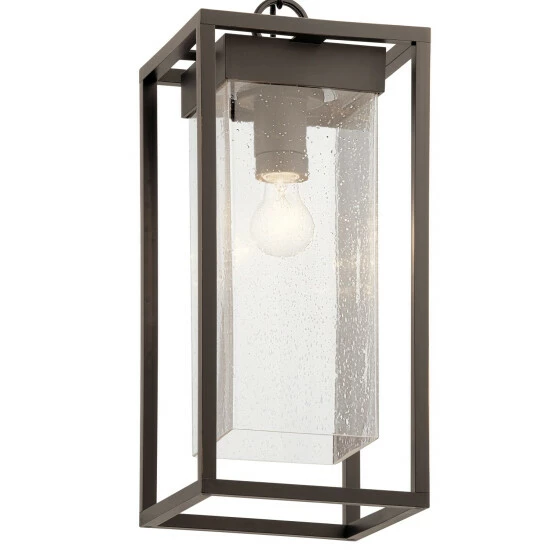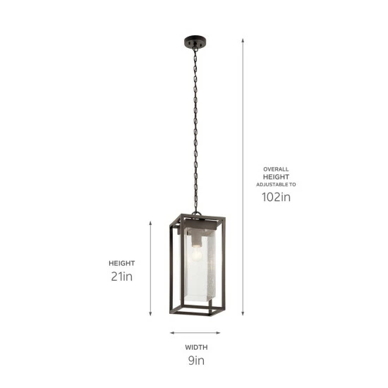 Inspired by residential architecture where bold, simple forms are used to help delineate areas of the home. The center seeded glass shade seems to give the illusion that it is floating within the strong, rectangular frame. The Mercerβ’ Outdoor Collection delivers a stunning, decorative wall sculpture to the home, day or night. The Mercerβ’ 24 inch 1 Light outdoor pendant features clear seeded glass in a Olde Bronze finish. Crafted from Kichler’s Climates material, each fixture is designed to withstand harsh outdoor elements, like saltwater spray and UV rays, for a beautiful and long-lasting finish. The Mercer outdoor pendant is perfect in several aesthetic environments. The clear seeded glass shade gives the illusion that it is floating within the strong, rectangular frame. The Mercer 1 light outdoor pendant with an Olde Bronze finish and clear seeded glass complements a variety of styles and is perfect for an outdoor entryway, patio or porch. This pendant measures 7 inches in width and 24 inches in body height.