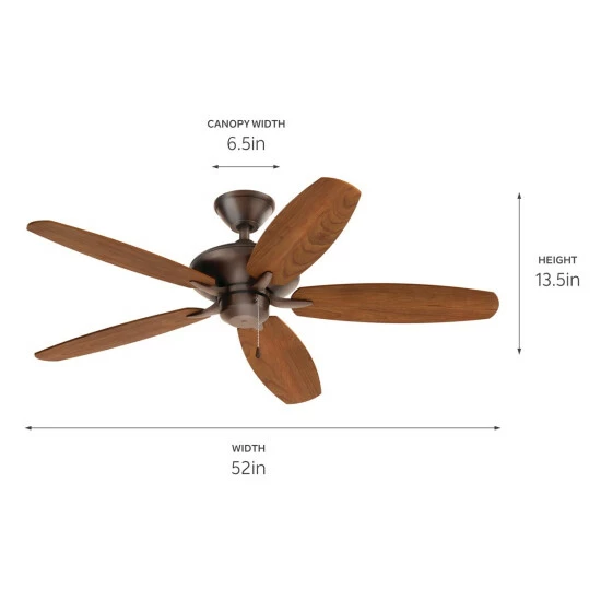 The Renew Energy Starยฎ Qualified 52 inch Ceiling Fan easily integrates across multiple applications and dรฉcor with its soft, modern design aesthetics. Inspired by the clean and simple design of a Nordic Vase it features a clean blade style in an Oil Brushed Bronze finish and a larger than standard motor with no visible vents in the housing – delivering stylish comfort to your space