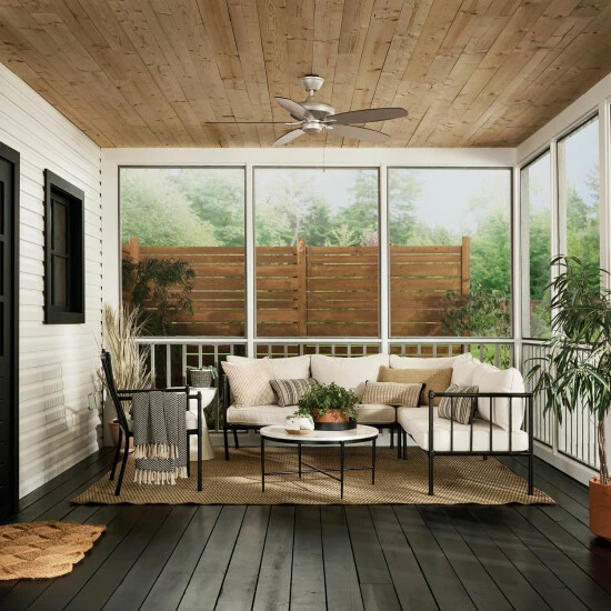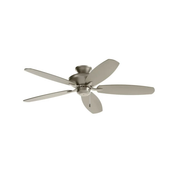 The Renew Patio 52 inch Ceiling Fan in a Brushed Nickel finish easily integrates across multiple applications and dΓ©cor with its soft, modern design aesthetics. Inspired by the clean and simple design of a Nordic Vase it features a clean blade style and a larger than standard motor with no visible vents in the housing – delivering stylish comfort to your space