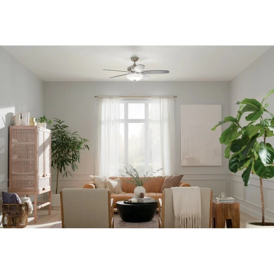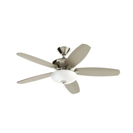 The Renew Select 52 inch LED Ceiling Fan in a Brushed Stainless Steel finish easily integrates across multiple applications and dΓ©cor with its soft, modern design aesthetics. Inspired by the clean and simple design of a Nordic Vase it features a clean blade style and a larger than standard motor with no visible vents in the housing. Plus, the uni-pack fan features a low profile LED bowl light kit with frosted white etched opal glass.