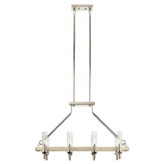 Glamour meets farmhouse charm with this 6 light linear chandelier from the Telan collection. A mixture of metal finishes and whitewashed wood-tones bring a homespun touch, while the clean lines and fluted glass shades provide the polishing end effect.