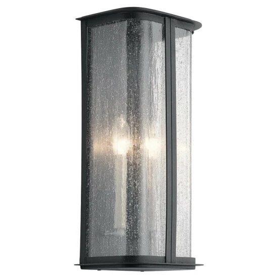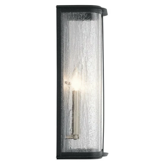 Instantly add sophistication with the Timmin 18 inch 1 light wall light. Its curved shape and elegant Distressed Black finish make it unique, while its Clear Seeded Glass adds texture and dimension. As the light shines through, the bulbs you choose play a role in this stylish display.The Timmin collection works in a variety of design styles including updated transitional.Design inspiration is all around us. The Timmin wall light is a perfect example, owing its unique shape to a contemporary bureau. Its smooth, curved look instantly adds sophistication to your home’s refined exterior.Clear Seeded Glass is glass that’s textured to create a unique look. It ever-so-delicately softens the light but still emits a welcoming glow. It also helps hid fingerprints and other elements that often make exterior lights hard to keep clean, which is always a welcome benefit.