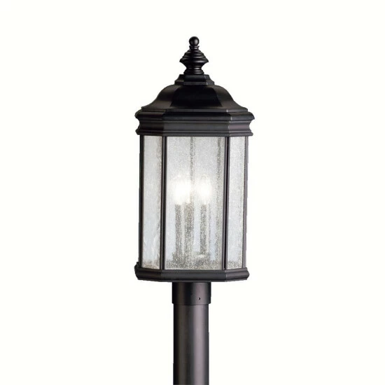 This Kirkwood collection 3-light outdoor post mount features a black finish that will complement many transitional decors. The clean lines of the aluminum frame add interest while clear seedy glass panels will give your outdoor decor a whole new look. The Kirkwood collection looks to add a touch of elegance to your home with a line of lighting that embodies classic design for those who only want the finest. Using a high quality fit and finish, the Kirkwood collection employs our basic black finish that not only looks fantastic now, but also will last for years to come. Seedy glass panels on each of the fixtures’ sides allow for light to radiate from all angles, ensuring you the light you need. Post is not included. Dimensions: 23.5 inches high x 9.75 inch diameter. Turn on our fixtures, and watch your room transform even more. From lighting to ceiling fans Kichler collections are built around our simple philosophy of bringing you the effect you want for your home or business. Our collections coordinate from room-to-room, or let you mix and match from wall-to-ceiling. And each fixture is designed to deliver a stunning quality of light that makes your space more beautiful and more livable. As one of the largest, privately held residential lighting fixture companies in North America, we’re constantly working to create innovative and on-trend decorative products as well as knowledgeable support. Since 1938, we’ve been creating products that are not only well designed, but also practical. We invest millions of dollars each year in design, technology and testing to assure that we’re offering distributors, designers, installers and homeowners not only innovative technologies – but also fixtures that perform efficiently, install intuitively and deliver a premium source of light. This philosophy holds true for everything we create – from our wide variety of decorative fixtures to our award-winning landscape lighting to our ceiling fans.