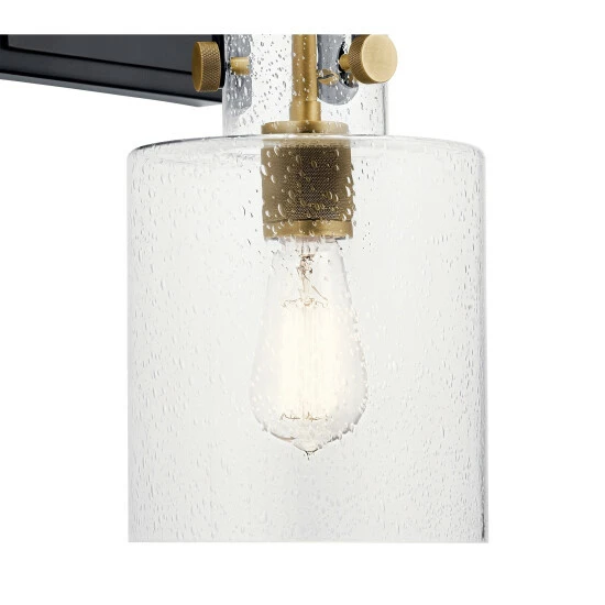 Generously sized choices make Kitner a standout collection in kitchens, baths, living spaces anywhere you want to add an updated industrial feel to a room. The mixed finishes on the arms, sockets and subtle details contrast beautifully with the clear glass shades.