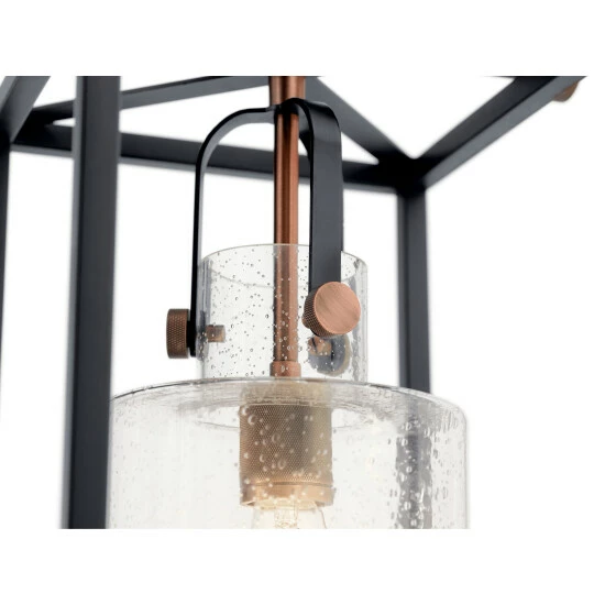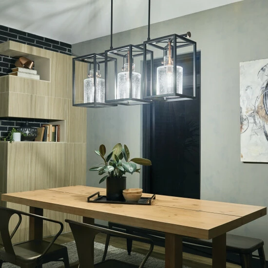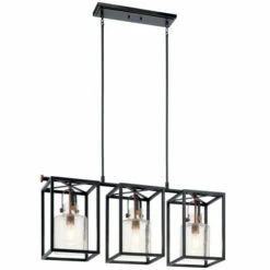 Generously sized choices make Kitner a standout collection in kitchens, baths, living spaces anywhere you want to add an updated industrial feel to a room. The mixed finishes on the arms, sockets and subtle details contrast beautifully with the clear glass shades.
