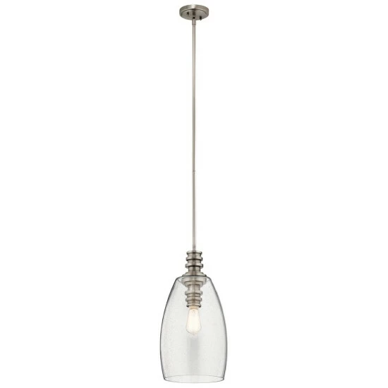 This Lakum collection 1-light pendant features a classic pewter finish that will complement many transitional decors. The clear seeded glass shade allows the light to bounce in different ways giving a unique look for any space and completing this simple yet functional design.