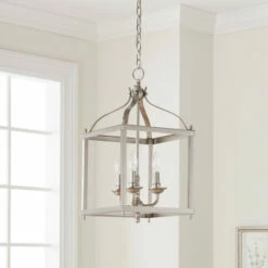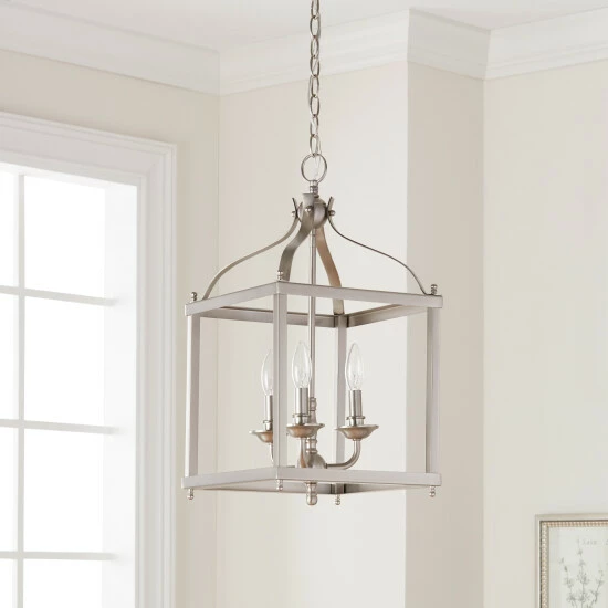This 3-light pendant cage from the Larkin collection features a brushed nickel finish that will complement many traditional decors. The smooth, clean lines of the steel frame add interest and forms a unique silhouette that will enhance any space. This piece includes 90 inches of lead wire and 72 inches of chain so it can be hung at your desired height. Dimensions: 22.25 inches high x 12 inch diameter. Turn on our fixtures, and watch your room transform even more. From lighting to ceiling fans Kichler collections are built around our simple philosophy of bringing you the effect you want for your home or business. Our collections coordinate from room-to-room, or let you mix and match from wall-to-ceiling. And each fixture is designed to deliver a stunning quality of light that makes your space more beautiful and more livable.As one of the largest, privately held residential lighting fixture companies in North America, we’re constantly working to create innovative and on-trend decorative products as well as knowledgeable support. Since 1938, we’ve been creating products that are not only well designed, but also practical. We invest millions of dollars each year in design, technology and testing to assure that we’re offering distributors, designers, installers and homeowners not only innovative technologies – but also fixtures that perform efficiently, install intuitively and deliver a premium source of light. This philosophy holds true for everything we create – from our wide variety of decorative fixtures to our award-winning landscape lighting to our ceiling fans.