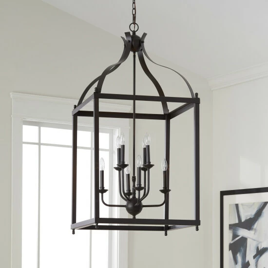 This 8-light foyer pendant/chandelier from the Larkin collection features an olde bronze finish that will complement many traditional decors. The clean lines of the steel frame form a cage around the light cluster and will add interest to any space. This piece includes 72 inches of chain and 96 inches of wire so it can be hung at your desired height. Dimensions: Up to 122 inches high x 24 inch diameter. Turn on our fixtures, and watch your room transform even more. From lighting to ceiling fans Kichler collections are built around our simple philosophy of bringing you the effect you want for your home or business. Our collections coordinate from room-to-room, or let you mix and match from wall-to-ceiling. And each fixture is designed to deliver a stunning quality of light that makes your space more beautiful and more livable. As one of the largest, privately held residential lighting fixture companies in North America, we’re constantly working to create innovative and on-trend decorative products as well as knowledgeable support. Since 1938, we’ve been creating products that are not only well designed, but also practical. We invest millions of dollars each year in design, technology and testing to assure that we’re offering distributors, designers, installers and homeowners not only innovative technologies – but also fixtures that perform efficiently, install intuitively and deliver a premium source of light. This philosophy holds true for everything we create – from our wide variety of decorative fixtures to our award-winning landscape lighting to our ceiling fans.