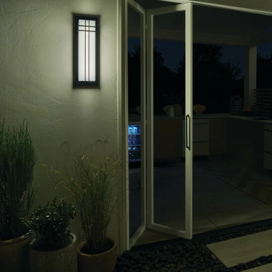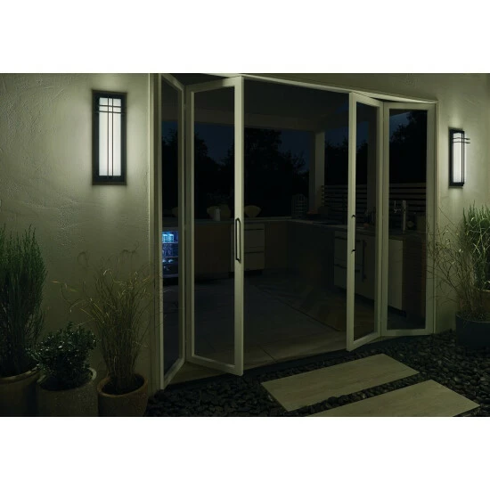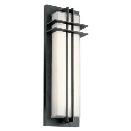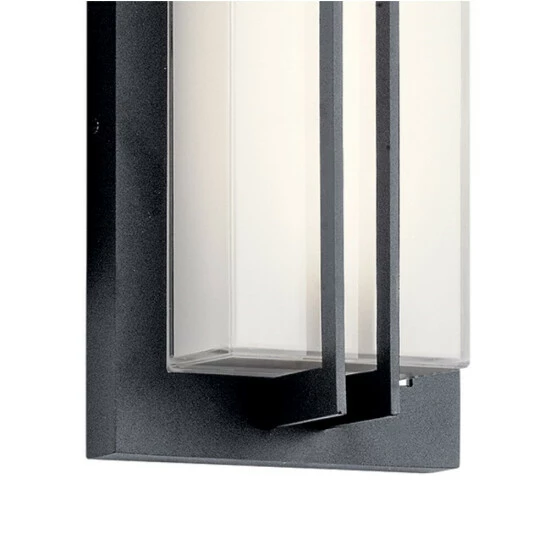 This Manhattan collection 2-light outdoor LED wall sconce features a textured black finish that will complement many contemporary and modern decors. The clean lines of the aluminum frame add interest while the white glass diffuser softens the light to create a warm welcoming glow to your outside decor.