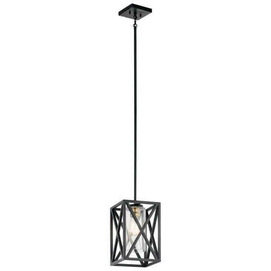 This Moorgate collection 1-light mini pendant features a black finish that will complement many lodge, country, and rustic decors. The clean lines of steel frame add interest while the clear glass shade offers uninterrupted light for any space.