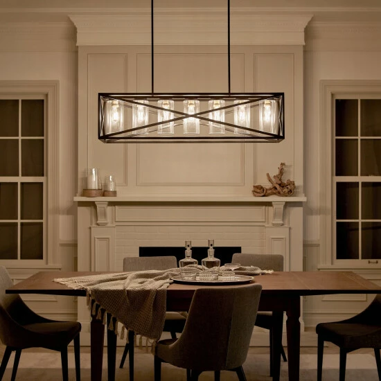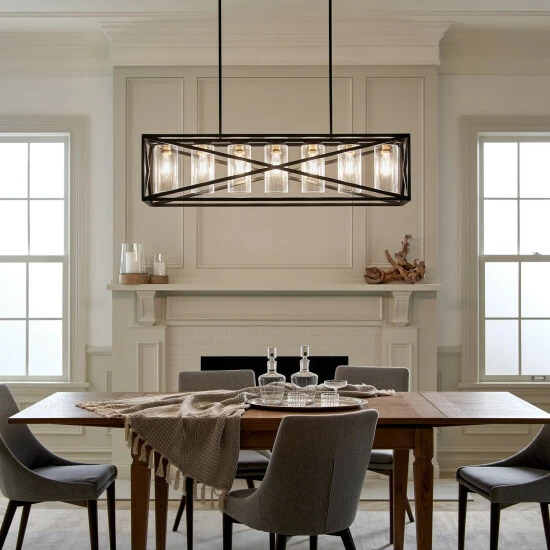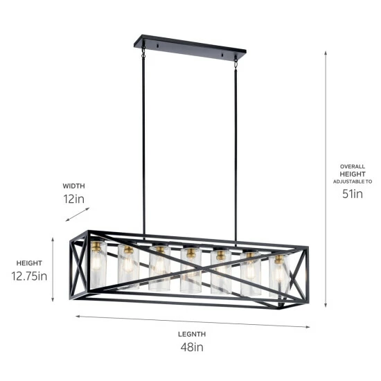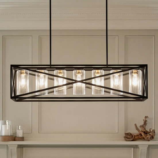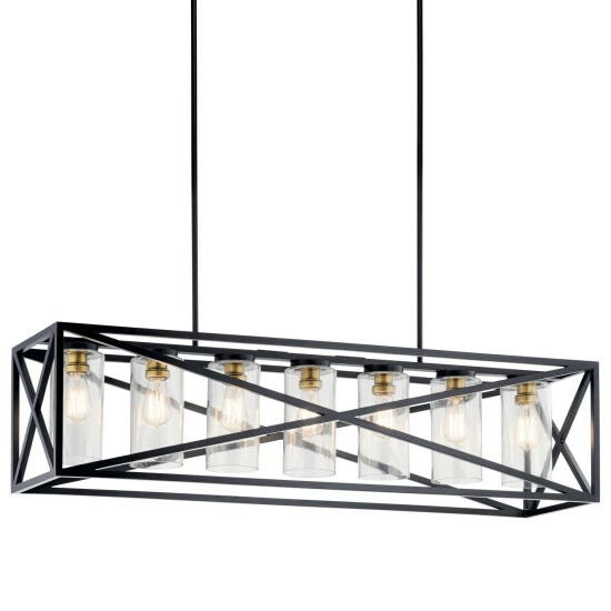 Bring abundant light and modern style to your space with this beautiful Kichler Lighting Moorgate Collection chandelier. Durable steel construction, a black finish, and clear glass shades combine to create a durable seven-light fixture that adds beauty as well as brightness to your room.