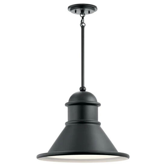 This Northland collection 1-light outdoor pendant features a black finish that will complement many lodge, country, and rustic decors. The clean lines of the aluminum frame adds interest and completes this simple yet functional design. The Northland collection combines a white inner finish with a matte black exterior. The result is a vintage factory style that fills an area with light. This piece includes 36 inches of stems and 67 inches of wire so it can be hung at your desired height (Up to 52 inches). Dimensions: 14.25 inches high x 18 inch diameter. Turn on our fixtures, and watch your room transform even more. From lighting to ceiling fans Kichler collections are built around our simple philosophy of bringing you the effect you want for your home or business. Our collections coordinate from room-to-room, or let you mix and match from wall-to-ceiling. And each fixture is designed to deliver a stunning quality of light that makes your space more beautiful and more livable. As one of the largest, privately held residential lighting fixture companies in North America, we’re constantly working to create innovative and on-trend decorative products as well as knowledgeable support. Since 1938, we’ve been creating products that are not only well designed, but also practical. We invest millions of dollars each year in design, technology and testing to assure that we’re offering distributors, designers, installers and homeowners not only innovative technologies – but also fixtures that perform efficiently, install intuitively and deliver a premium source of light. This philosophy holds true for everything we create – from our wide variety of decorative fixtures to our award-winning landscape lighting to our ceiling fans.