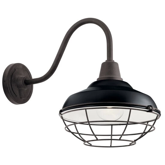 The caged design of the Pier 12in. 1 light outdoor wall/ceiling light in Black offers the vintage outdoorsy look, while the bright white interior enhances and reflects the light for essential nighttime illumination.