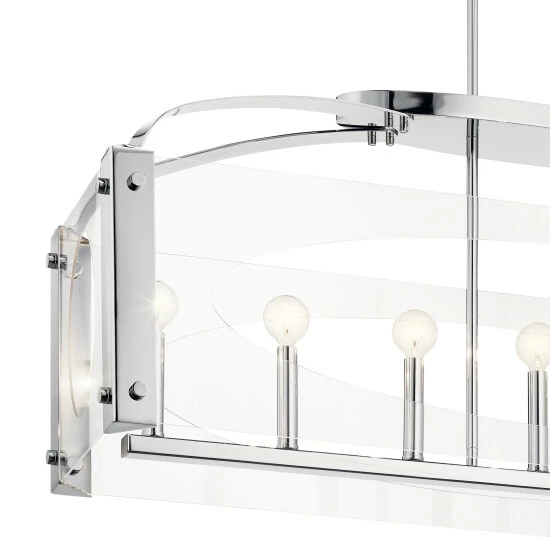 Pytel takes the classic cage fixture in new (and more modern) directions. Clear acrylic panels draw attention and add shimmer to the light. Each features an elliptical cutout, showcasing the tall candles within. It brings a soft contemporary look to today’s modern homes.