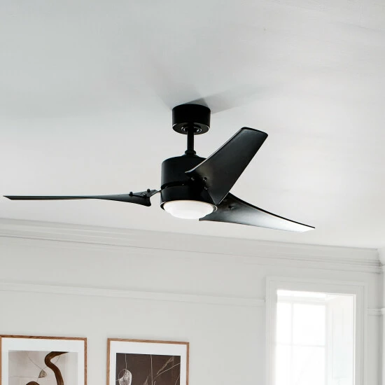 This 60-inch, 3 blade ceiling fan from the Rana collection features a satin black finish that will subtly highlight the existing decor in your home. This attractive fan will complement many transitional decors. This satin black ceiling fan from the Rana collection has a wind turbine design that incorporates gently curved blades and clean finishes to deliver a modern feel. It’s nature + technology at its finest. The 3 blades are pitched 35 degrees and come with a matching satin black finish. The 188MM X 20MM Motor will provide the quiet power you need. This fan comes complete with a 3 Speed Wall Control Full Function System. Dimensions: 15.75 inches high x 60 inch diameter. Turn on our fixtures, and watch your room transform even more. From lighting to ceiling fans Kichler collections are built around our simple philosophy of bringing you the effect you want for your home or business. Our collections coordinate from room-to-room, or let you mix and match from wall-to-ceiling. And each fixture is designed to deliver a stunning quality of light that makes your space more beautiful and more livable. As one of the largest, privately held residential lighting fixture companies in North America, we’re constantly working to create innovative and on-trend decorative products as well as knowledgeable support. Since 1938, we’ve been creating products that are not only well designed, but also practical. We invest millions of dollars each year in design, technology and testing to assure that we’re offering distributors, designers, installers and homeowners not only innovative technologies – but also fixtures that perform efficiently, install intuitively and deliver a premium source of light. This philosophy holds true for everything we create – from our wide variety of decorative fixtures to our award-winning landscape lighting to our ceiling fans.