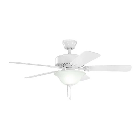 This 50-inch, 5 blade ceiling fan from the Renew Select collection features a white finish that will subtly highlight the existing decor in your home. This attractive fan will complement many traditional decors. Featuring the same design as the Renew(TM) ceiling fan, Renew(TM) Select in white comes with a bowl light kit. The 5 blades are pitched 12 degrees and come with a matching white finish. The 153mm x 15mm Motor will provide the quiet power you need. This fan comes complete with a pull chain (3 speeds forward and reverse). Dimensions: 18.5 inches high x 50 inch diameter. Turn on our fixtures, and watch your room transform even more. From lighting to ceiling fans Kichler collections are built around our simple philosophy of bringing you the effect you want for your home or business. Our collections coordinate from room-to-room, or let you mix and match from wall-to-ceiling. And each fixture is designed to deliver a stunning quality of light that makes your space more beautiful and more livable. As one of the largest, privately held residential lighting fixture companies in North America, we’re constantly working to create innovative and on-trend decorative products as well as knowledgeable support. Since 1938, we’ve been creating products that are not only well designed, but also practical. We invest millions of dollars each year in design, technology and testing to assure that we’re offering distributors, designers, installers and homeowners not only innovative technologies – but also fixtures that perform efficiently, install intuitively and deliver a premium source of light. This philosophy holds true for everything we create – from our wide variety of decorative fixtures to our award-winning landscape lighting to our ceiling fans.