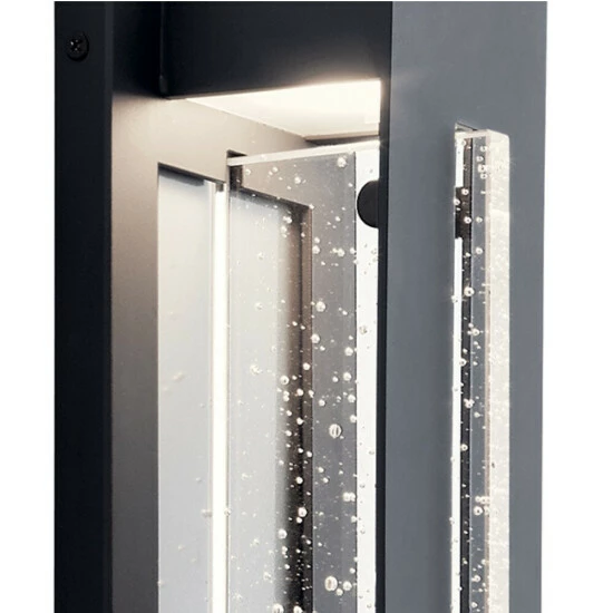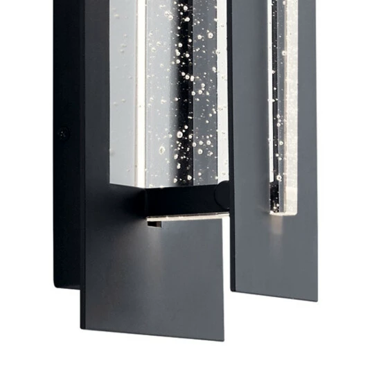 This River Path collection 1-light outdoor LED wall lantern features a textured black finish that will complement many contemporary and modern decors. Clean lines of the aluminum frame add interest while the clear seeded glass panel provides a unique look that will give your outside decor a whole new look.