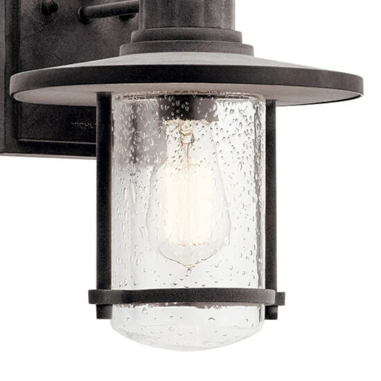 This Riverwood collection 1-light outdoor wall lantern features a weathered zinc finish that will complement many lodge, country, and rustic decors. Clean lines of the aluminum frame add interest while clear seeded glass gives your outdoor decor a whole new look. Riverwood’s modern take on this vintage-style outdoor wall lantern gives outdoor spaces a rustic seaside vibe. Bringing together touches of nautical style and industrial charm. Dimensions: 16.75 inches high x 9.5 inches wide x 10.5 inches deep. Turn on our fixtures, and watch your room transform even more. From lighting to ceiling fans Kichler collections are built around our simple philosophy of bringing you the effect you want for your home or business. Our collections coordinate from room-to-room, or let you mix and match from wall-to-ceiling. And each fixture is designed to deliver a stunning quality of light that makes your space more beautiful and more livable. As one of the largest, privately held residential lighting fixture companies in North America, we’re constantly working to create innovative and on-trend decorative products as well as knowledgeable support. Since 1938, we’ve been creating products that are not only well designed, but also practical. We invest millions of dollars each year in design, technology and testing to assure that we’re offering distributors, designers, installers and homeowners not only innovative technologies – but also fixtures that perform efficiently, install intuitively and deliver a premium source of light. This philosophy holds true for everything we create – from our wide variety of decorative fixtures to our award-winning landscape lighting to our ceiling fans.
