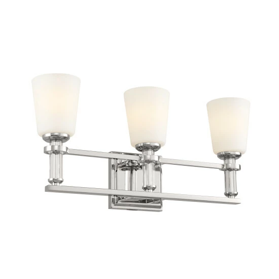The Rosalind collection inspires pure grandeur. This collection offers gorgeous finishes, a timeless design, and an opulent presence. The Rosalind 3 light vanity light in polished nickel is true refinement. Satin etched cased opal glass and glamorous crystal candle sleeves give you the perfect bathroom glow. Mounted upright, Rosalind seamlessly blends with your modern or updated traditional decor.
