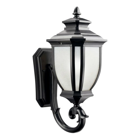 This 1-light outdoor wall lantern from the Salisbury collection features a black finish that will complement many transitional and traditional decors. The white linen glass panels soften the light to create a warm ambiance to your outside decor. With an unmistakable British influence, this elegant Salisbury collection projects timeless style for exterior spaces. Accented with a classic black finish and white linen glass, this piece is as functional as it is refined. Dimensions: 19.25 inches high x 8 inches wide x 10.75 inches deep. Turn on our fixtures, and watch your room transform even more. From lighting to ceiling fans Kichler collections are built around our simple philosophy of bringing you the effect you want for your home or business. Our collections coordinate from room-to-room, or let you mix and match from wall-to-ceiling. And each fixture is designed to deliver a stunning quality of light that makes your space more beautiful and more livable. As one of the largest, privately held residential lighting fixture companies in North America, we’re constantly working to create innovative and on-trend decorative products as well as knowledgeable support. Since 1938, we’ve been creating products that are not only well designed, but also practical. We invest millions of dollars each year in design, technology and testing to assure that we’re offering distributors, designers, installers and homeowners not only innovative technologies – but also fixtures that perform efficiently, install intuitively and deliver a premium source of light. This philosophy holds true for everything we create – from our wide variety of decorative fixtures to our award-winning landscape lighting to our ceiling fans.