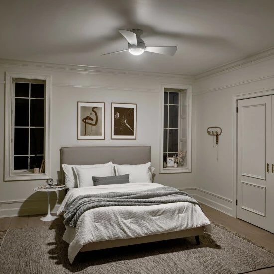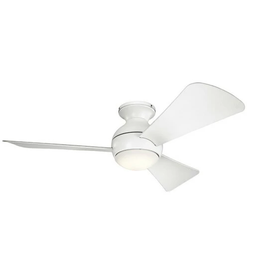 This 44-inch, 3 blade LED ceiling fan from the Sola collection features a matte white finish that will subtly highlight the existing decor in your home. This attractive fan will complement many contemporary and modern decors. This matte white ceiling fan from the Sola collection, which can be used in wet locations, features integrated LED lighting and flush mount installation. The globe inspired motor housing shape brings delightful style to any space. A metal fixture cap is included for non light use installations. The 3 blades are pitched 17 degrees and come with a matching matte white finish. The 172MM X 15MM Motor will provide the quiet power you need. This fan comes complete with a 3 Speed Wall Control Full Function System. Dimensions: 11 inches high x 44 inch diameter. Turn on our fixtures, and watch your room transform even more. From lighting to ceiling fans Kichler collections are built around our simple philosophy of bringing you the effect you want for your home or business. Our collections coordinate from room-to-room, or let you mix and match from wall-to-ceiling. And each fixture is designed to deliver a stunning quality of light that makes your space more beautiful and more livable. As one of the largest, privately held residential lighting fixture companies in North America, we’re constantly working to create innovative and on-trend decorative products as well as knowledgeable support. Since 1938, we’ve been creating products that are not only well designed, but also practical. We invest millions of dollars each year in design, technology and testing to assure that we’re offering distributors, designers, installers and homeowners not only innovative technologies – but also fixtures that perform efficiently, install intuitively and deliver a premium source of light. This philosophy holds true for everything we create – from our wide variety of decorative fixtures to our award-winning landscape lighting to our ceiling fans.